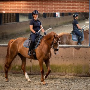 De aanleuning, oftwel het contact met de paardenmond is een delicaat onderdeel van het paardrijden. Een onafhankelijke hand is iets wat een ruiter vaak pas echt kan uitvoeren op het moment dat de rest van het lichaam de bewegingen van het paard voldoende op kan vangen. Het is dan ook een onderdeel wat ik persoonlijk pas laat in het lestraject meeneem.
